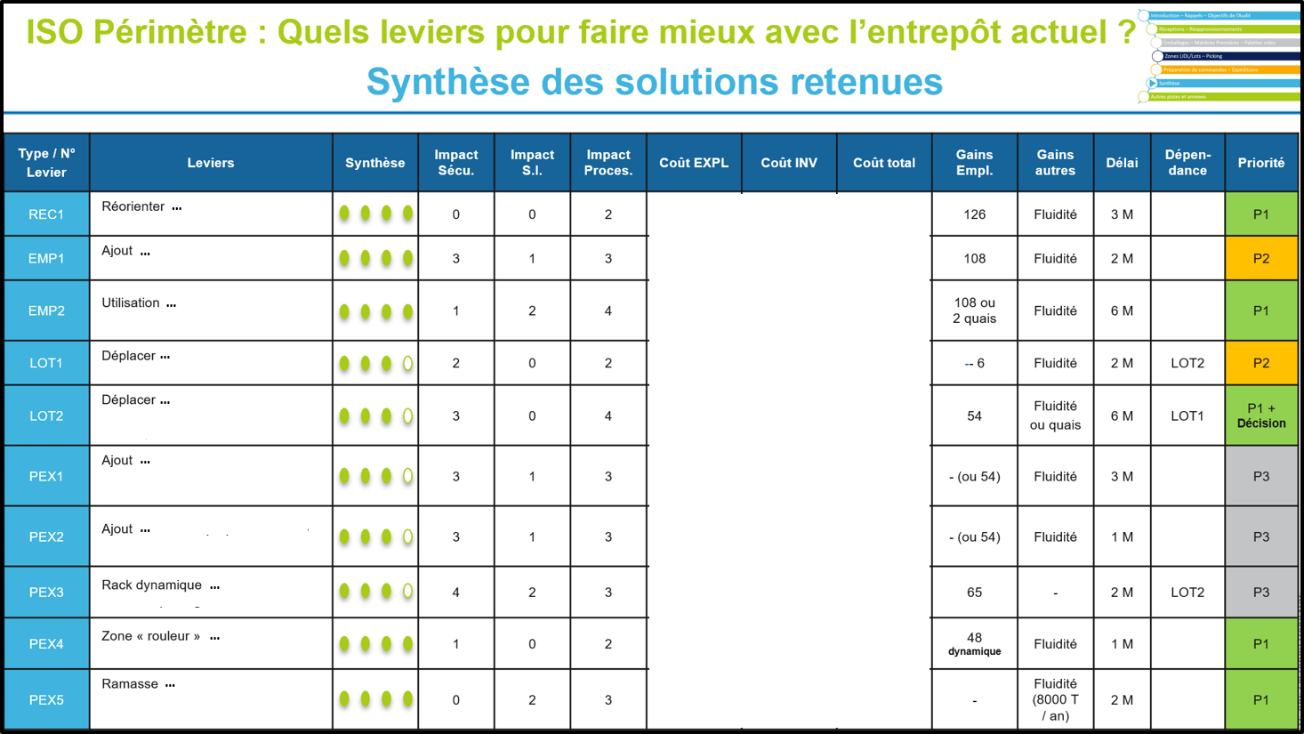 - Restitution de l’audit + recommandations Advents + Priorisation des actions à mener à CT, MT et LT